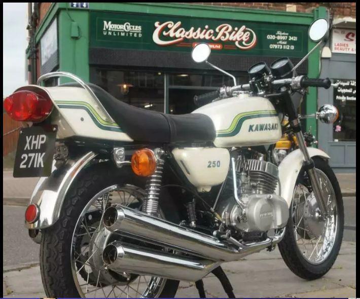 Total full restoration to original factory condition.. For sale, the rarest of the triples, The 1972 Kawasaki pearl ivory [Website URL removed] not the biggest, its not the fastest but it is one of the most beautiful looking bikes ever, Kawasaki put their heart into making this bike really stand out from the crowd, it was designed and built to impress its so good to look at and ride, real quality. This bike is a genuine UK bike and was fully restored by the very fussy perfectionist no expense spared everything must be right Richard Young, one of the countries finest triple restorers. This machine is in spotless clean condition and as an original restoration as you will find. Everything about this bike is just as it should be. Its that good it was a finalist in the Classic Bike Machine Of The Year a few years back and featured in an article in Classic bike. With only about 300 of these machines being imported 44 years ago and only available for one year before various changes were made makes these bikes highly sort after. So many must have been thrashed and crashed..This bike was first registered on the 10/07/72.. I bet there are not many left in any condition let alone as near perfect as this one. Bike starts, ticks over, runs and rides lovely with only 2790 miles since a total restoration and engine rebuild. Everything works and looks and shines as it should. Many new old stock parts have been used in the restoration so they retain their original factory finish. Nothing is over polished and where it should be zinc its zinc rather than everything bright polished chrome which would not be original to this model. MOT till May next year so you can ride away as if it was 1972 straight out of the showroom.