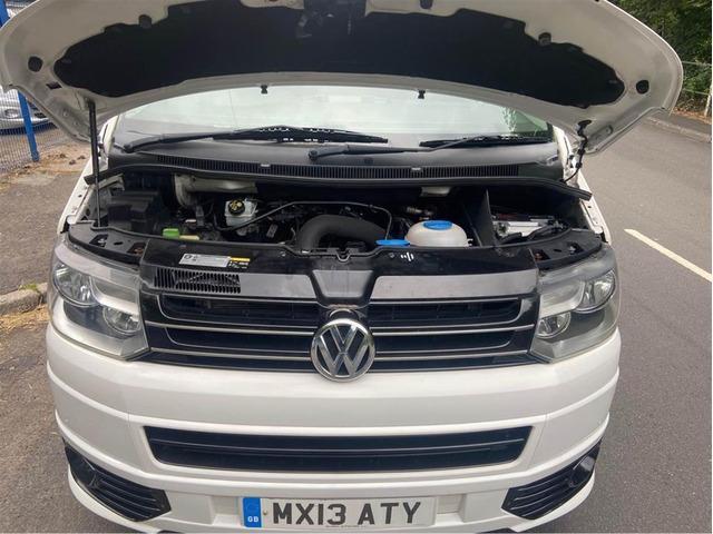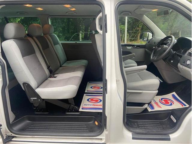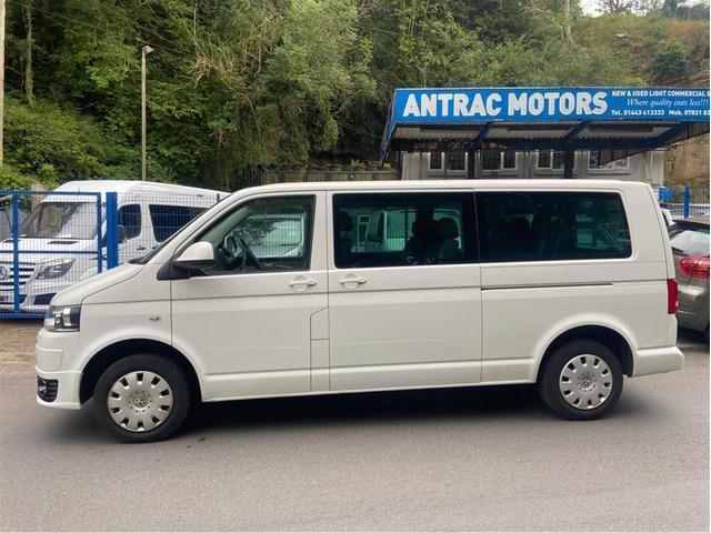 This vw transporter lwb shuttle 8 seater se has done 80k with service history - front captains seats with arm rests - A/C - rear tailgate it has been complemented with a Sportline style front splitter fully colour coded in candy white with piano black detailing to all grills, it benefits from privacy glass go rear and sides - twin sliding side doors - black inlay carpets throughout - removable rear seating 2,0 turbo diesel.Miles not kms 80k