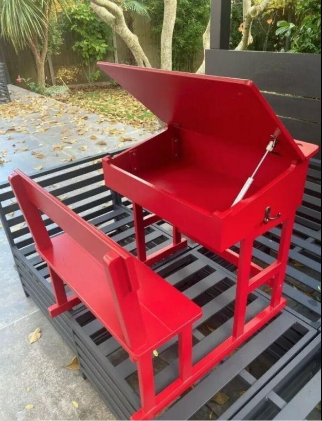 Beautiful Red Wooden Desk with integral bench seat.