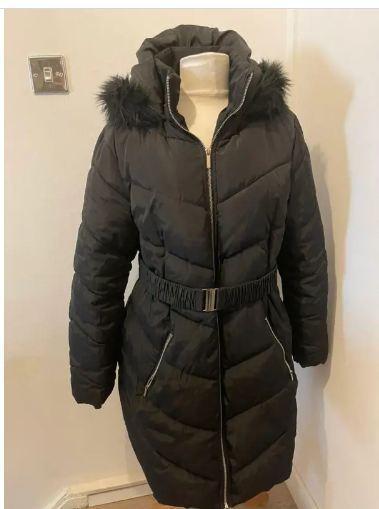 Belted black long puffer maternity jacket/coat with fur trim size 14 Belted puffer long black jacket with fur trim. Posted by nash in Women's Clothing, Coats & Jackets in Brick Lane. 19 February 2022