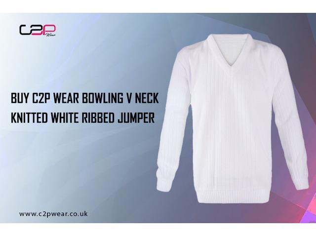 "Mens Bowling V Neck Knitted White Ribbed Jumper is ideal for sporting events wearing it is also comfortable. Any occasion is appropriate for this knitted ribbed jumper. Depending on whether you're going for a more dressy or casual appearance, V-neck sweaters can be worn with dark denim, chinos, or wool trousers, leather boots, or Oxford dress shoes. Because they go so well with a well-chosen layer underneath, V-neck sweaters look good in the office. C2P Wear is the best platform to buy the Men clothing in Liverpool, So Come and get the best Bowling V Neck Knitted White Ribbed Jumper from the online store of C2P Wear.