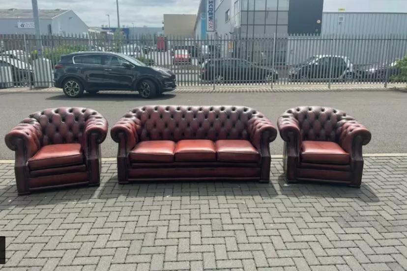 Chesterfield tan sofa set, 3 seater and 2 single chairs, pick up from E4 9JG Shurgard, London