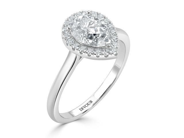 Classic Pear Diamond Halo Engagement Ring for Sale