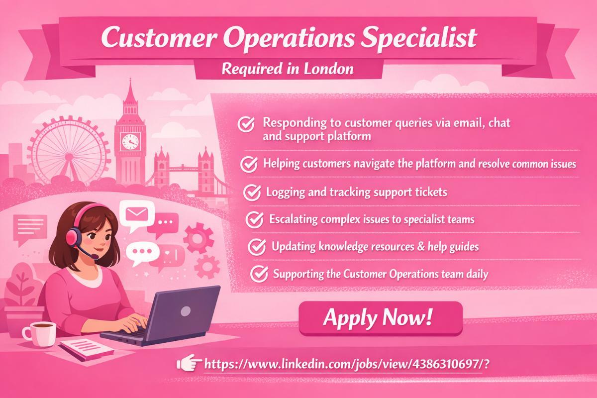 Customer Operations Specialist Required in London - London