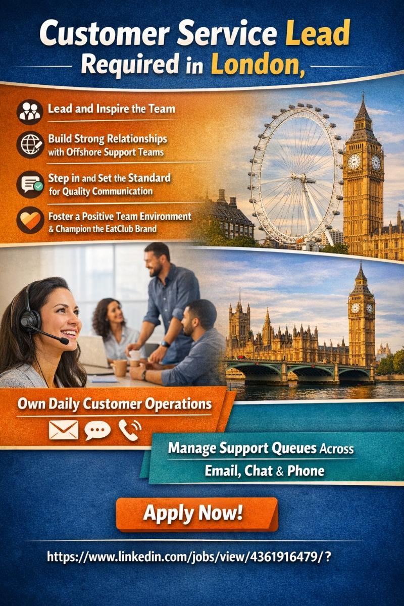 Customer Service Lead Required in London