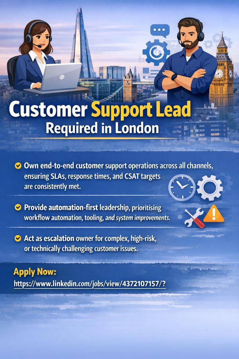 Customer Support Lead Required in London
