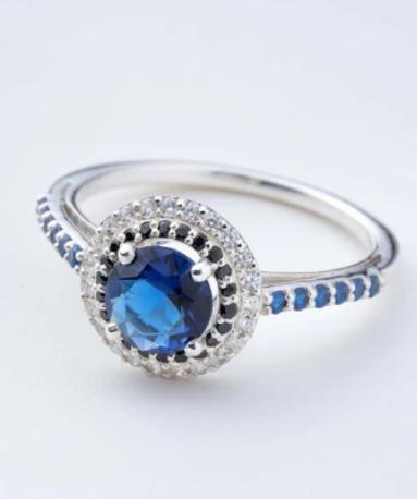 Designs & You Silver Ring with Blue Stone American Diamond-Studded Classic Ring For Women - London