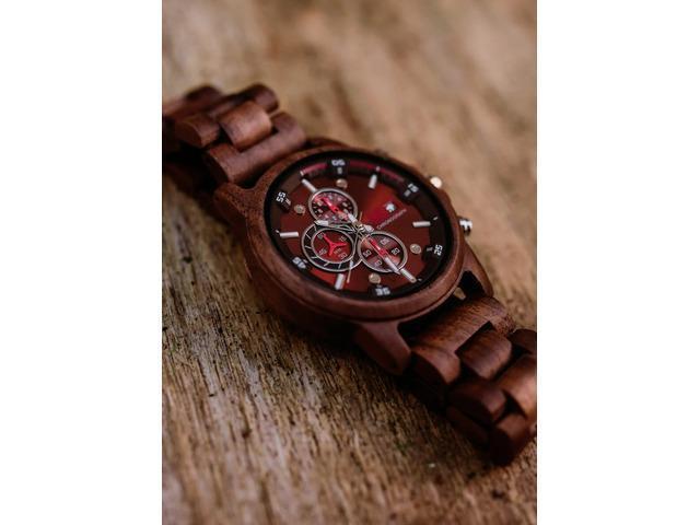 This watch is made from Walnut, a hardwood with a dark, tight-grained texture. It is a specialist hardwood that is mainly used for luxury furniture and interior joinery.