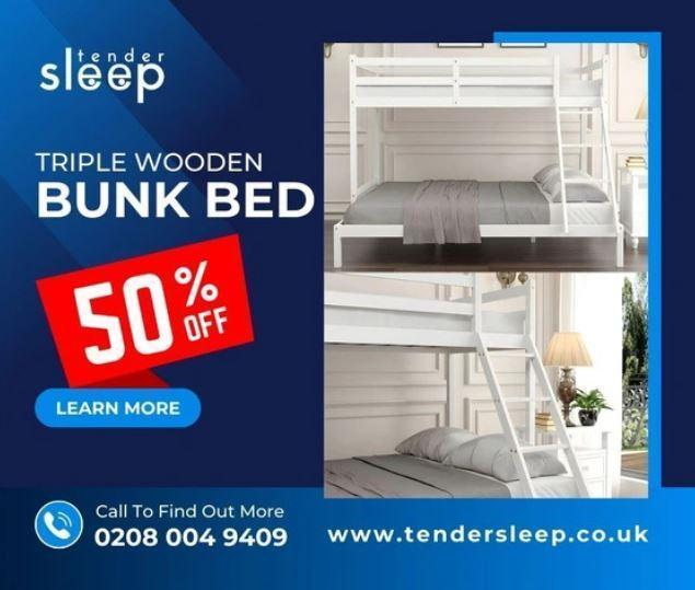 Elevate Your Bedroom with Triple Wooden Bunk Beds!" buy now up to 50% off - London