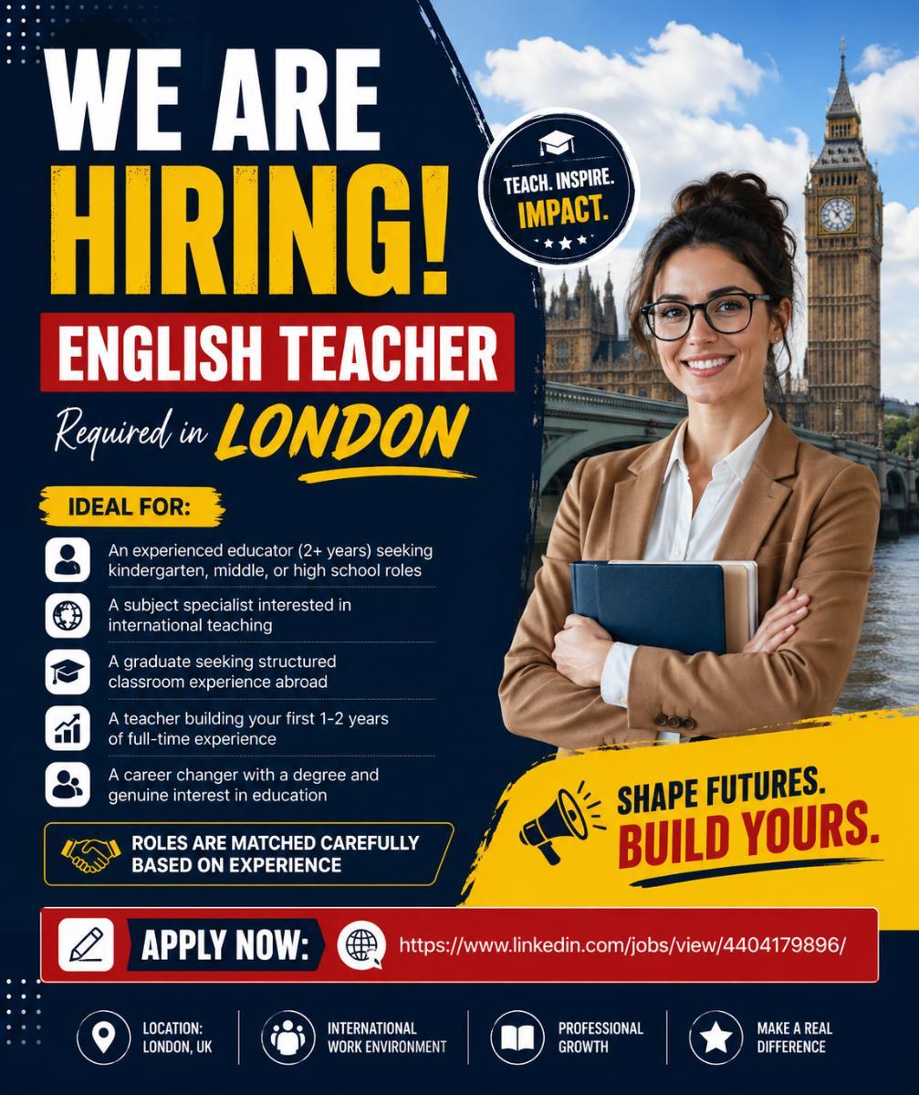 Structured academic calendar Entry-level teachers typically begin in kindergarten placements. Teachers with 2+ years of full-time classroom experience may qualify for middle or high school roles. Language Schools (Year-Round Starts)