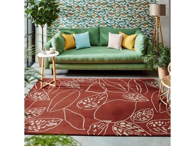 This rug features a brilliant nature-print pattern in a red, rust and cream colour palette making it both modern and elegant.
