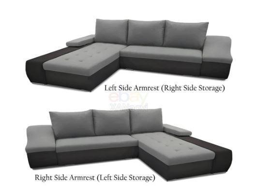 High Quality Faux Leather & Fabric Toronto Corner Sofa Bed With Storage - London