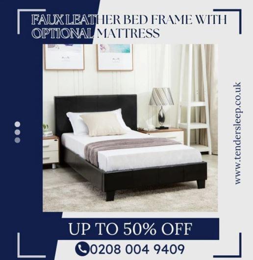 Luxurious Faux Leather Bed Frame with Optional Mattress" up to 50% off