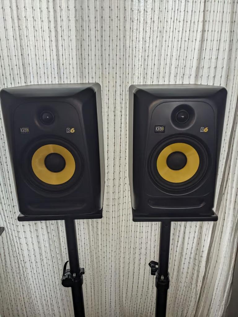 Pair of KRK R6 Studio Monitors with stands. £300.