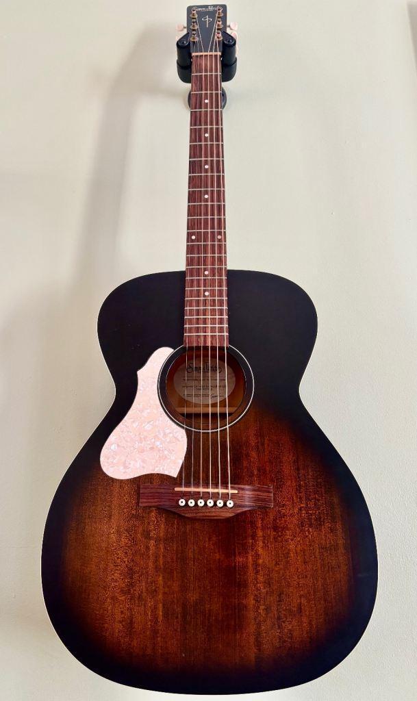 This is a beautiful, very well-looked after left-handed guitar from S&P, part of the Godin family of hand-made guitars from Canada, with solid spruce top/wild cherry back and sides. Their site describes it as a 'very responsive and extremely well balanced dreadnought sound, the Songsmith is an honest and true acoustic guitar', and that rings true to me. I've had Taylor GS Mini, PRS, Tim Armstrong Hellcat, other parlour-size guitars and this has superior tone and projection over any of them. Few very minimal marks but no major dings or scratches, nice white pearloid pickguard, brass tuning pegs, white w/black dot bridge pins. A really nice looking workhorse of a guitar with recent string change: D'Addario XS 11-52s. I see them upwards of £450 used, and not easy to find left-handed. Selling for £350–now discounted to £320, no swaps/trades.