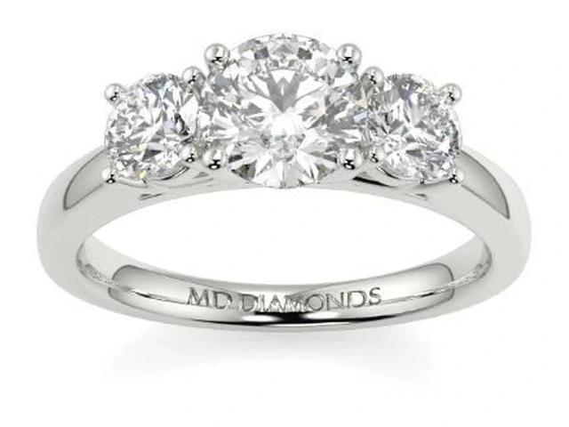 Looking for the perfect engagement ring? Discover our exquisite collection of round three stone engagement rings in London! These elegant rings symbolize your past, present, and future, featuring brilliant round diamonds that offer timeless beauty. Crafted with precision, our three stone rings are available in various settings, including yellow gold, white gold, and platinum. Perfect for those seeking a classic yet meaningful design. Visit us in London or shop online to find the ring of your dreams. Competitive pricing and customization options available. Make your proposal unforgettable with a round three stone engagement ring!