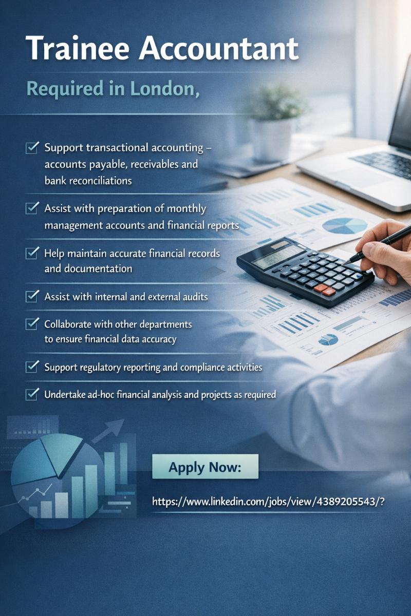 The role will focus on providing support for the accounting team by handling day to day tasks, preparing reports, maintaining financial integrity and contributing to strategic decision making.