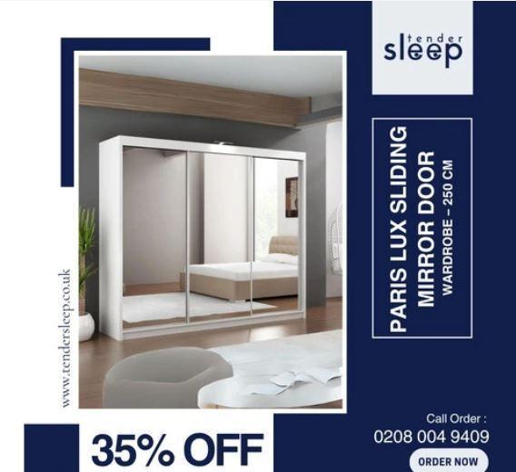 Transform Your Space with the Lux Sliding Mirror Door Wardrobe – 250 cm". shop now 35% off - London