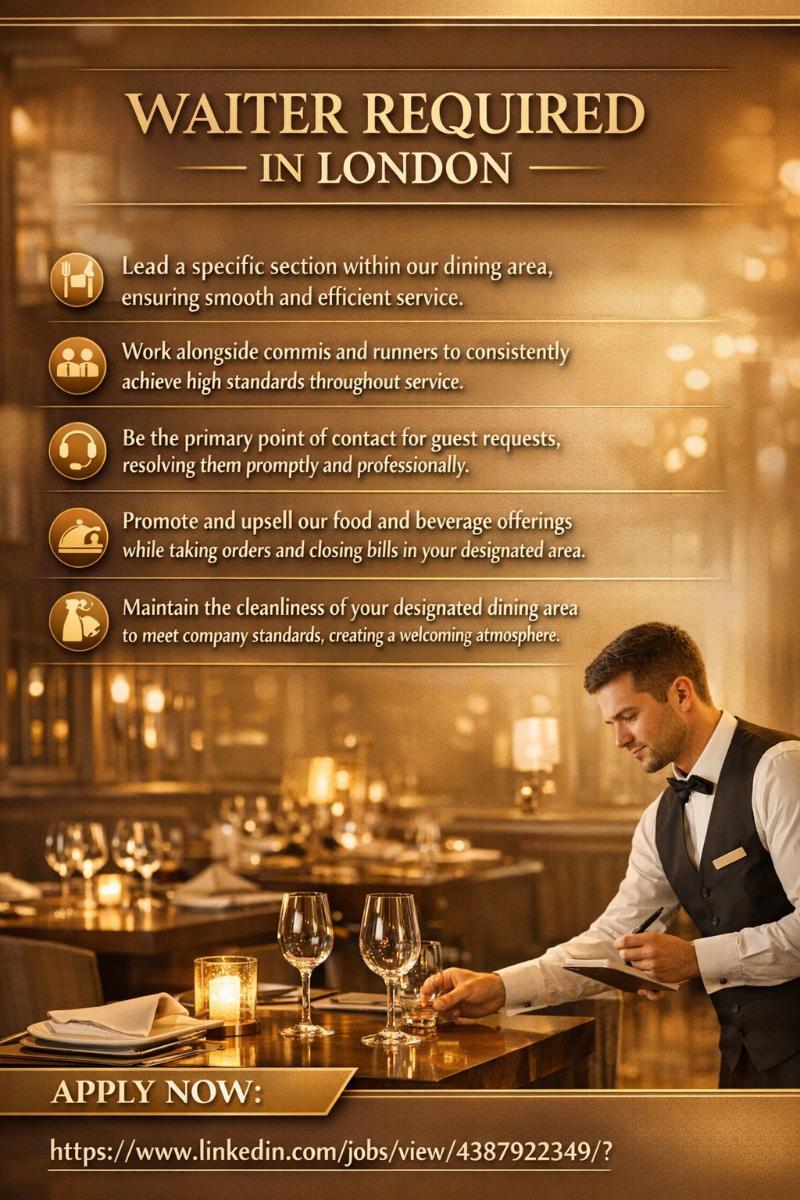A minimum of 2 years of experience as a waiter in high-end restaurants.