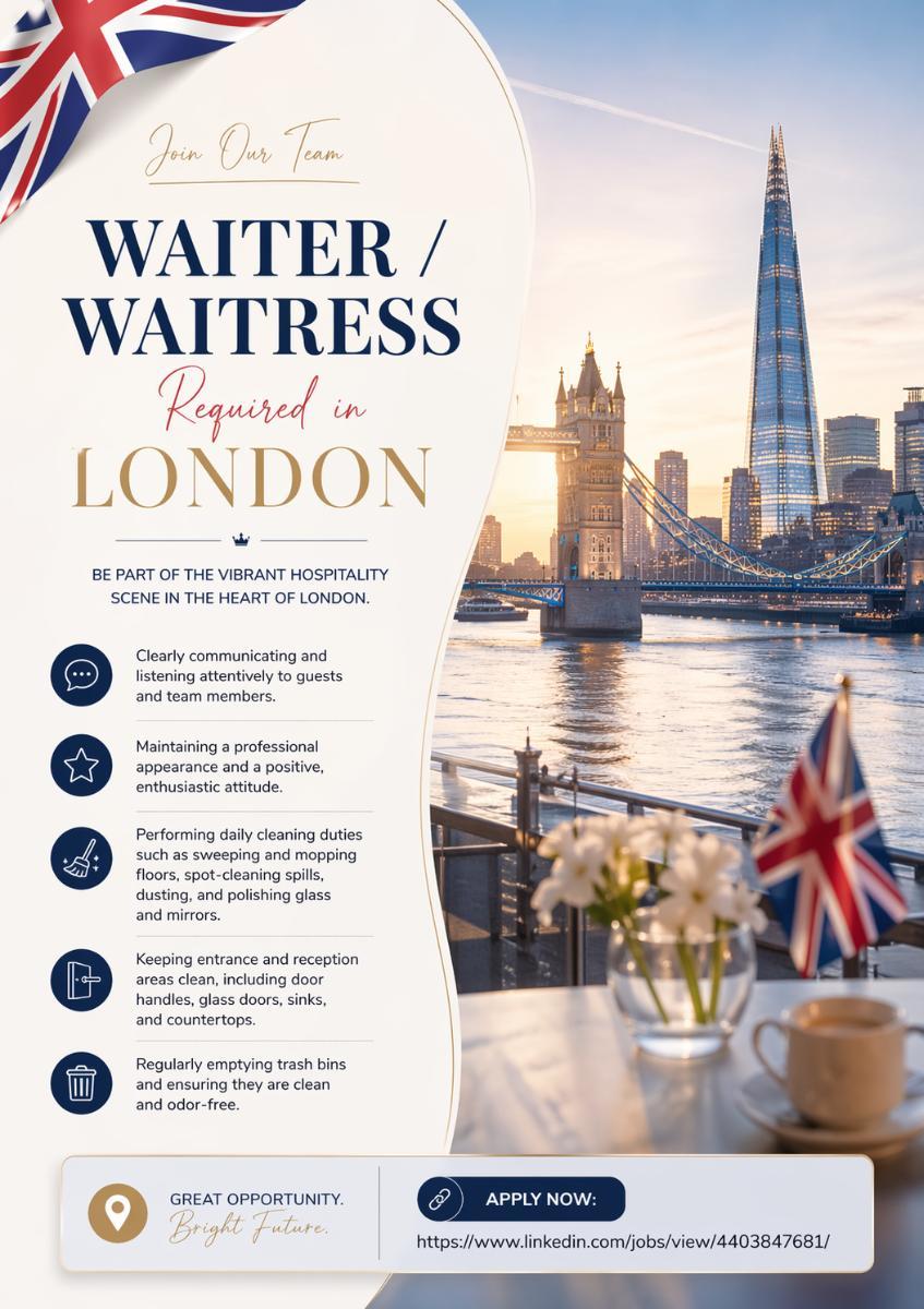 Waiter / Waitress Required in London - London