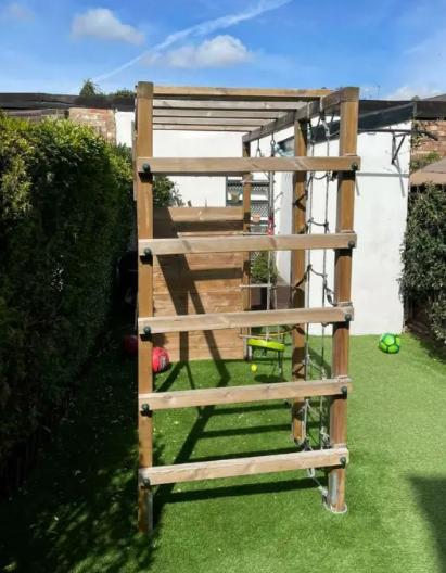 Only 2 years old and in good condition, selling due to moving house. All the details below are from the manufactures website. The climbing frame will be dismantled and ready for collection or can be delivered for free within a 5mile.