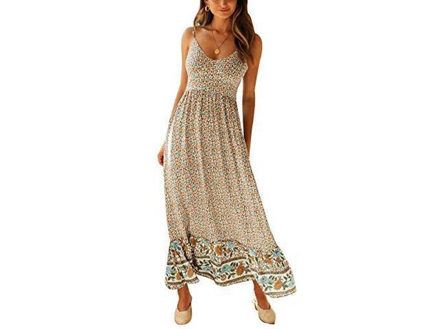 Women's Boho Floral Maxi Dresses V Neck Sleeveless Summer Beach Casual Long Dress