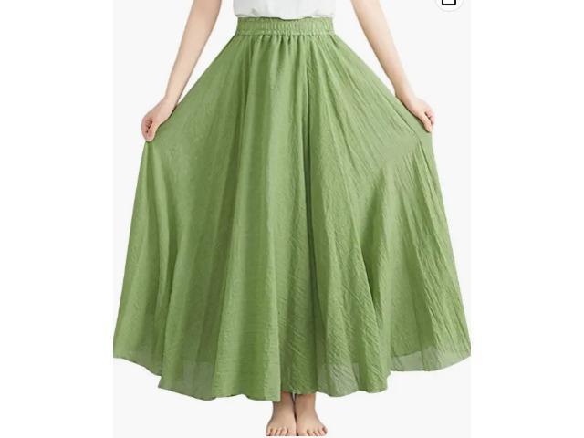 Feature:Women Cotton Linen Skirt,Elastic Waist,A-Line,Solid Color,Loose Fit,Casual Boho Beach Skirt Dress.