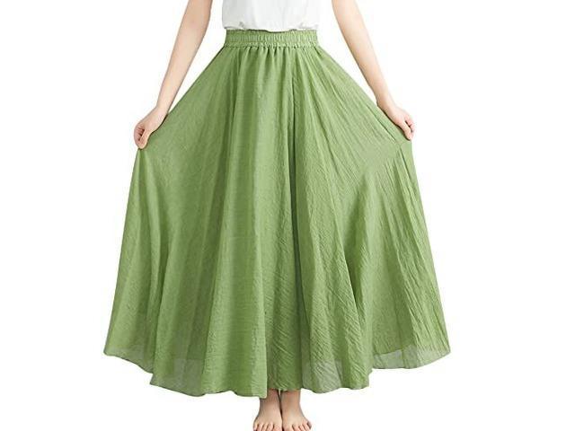 Women's Cotton Linen Maxi Skirt Elastic Waist Pleated Bohemian Vintage Beach Long Skirt